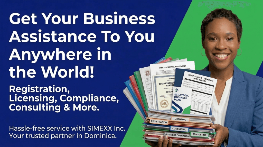 Simexx Inc helps diaspora entrepreneurs, international investors, and business owners establish and manage operations in Dominica. We act as your local partner, handling the practical challenges of doing business on the island from afar.